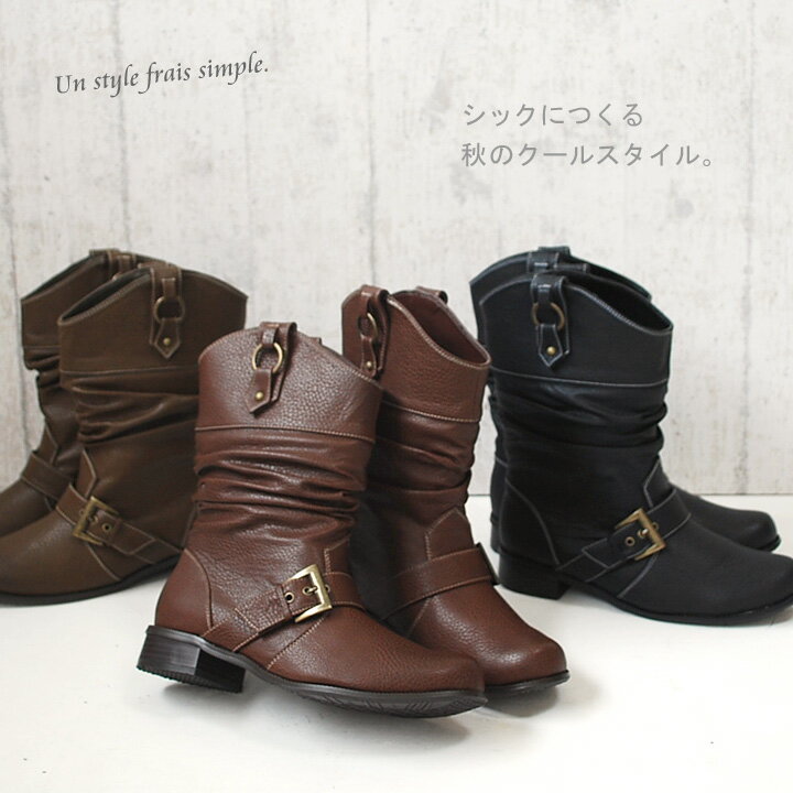 カジュアルにもクラシックにもキマる☆【b3-8900】シックな秋のクールスタイル。ベルト付きくしゅくしゅミドルブーツPorky's-ポーキーズ-※品切れサイズにつきましては、今後再入荷予定はございませ
